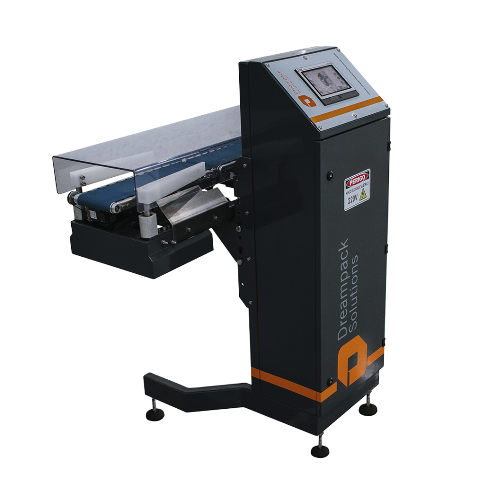 Este modelo de checkweigher atende a diversos tipos de produto, sólidos, sachês, frascos entre outros, possui sistema de rejeito individualizados para peso baixo e peso alto, disponibilizando correção automática em sistema de envase.